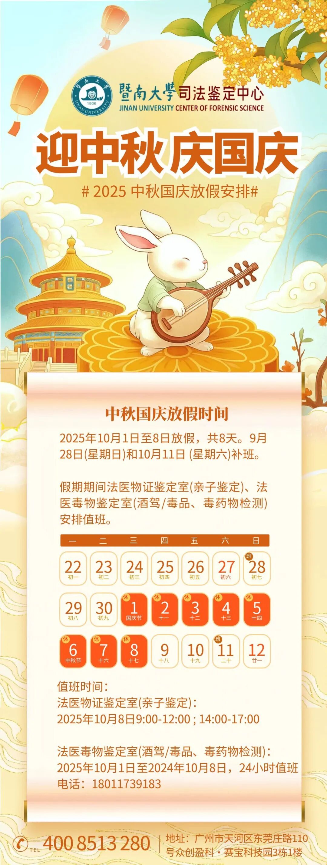 暨南大学司法鉴定中心中秋国庆放假安排